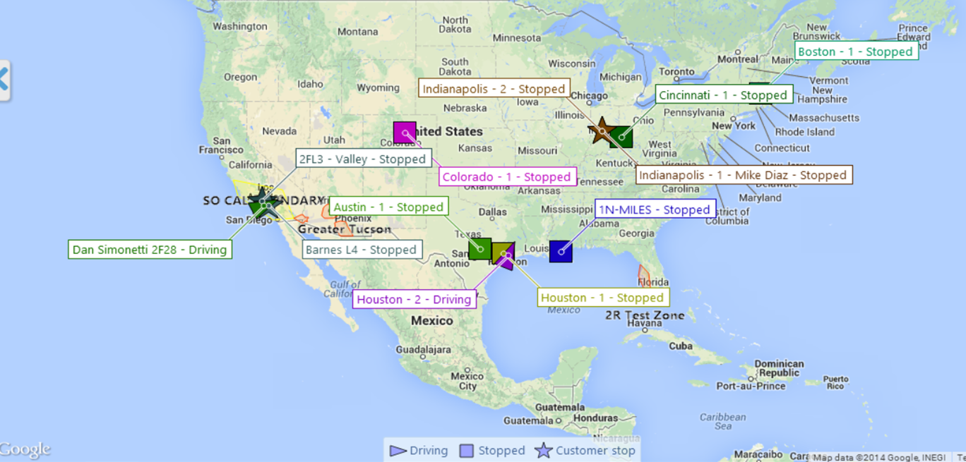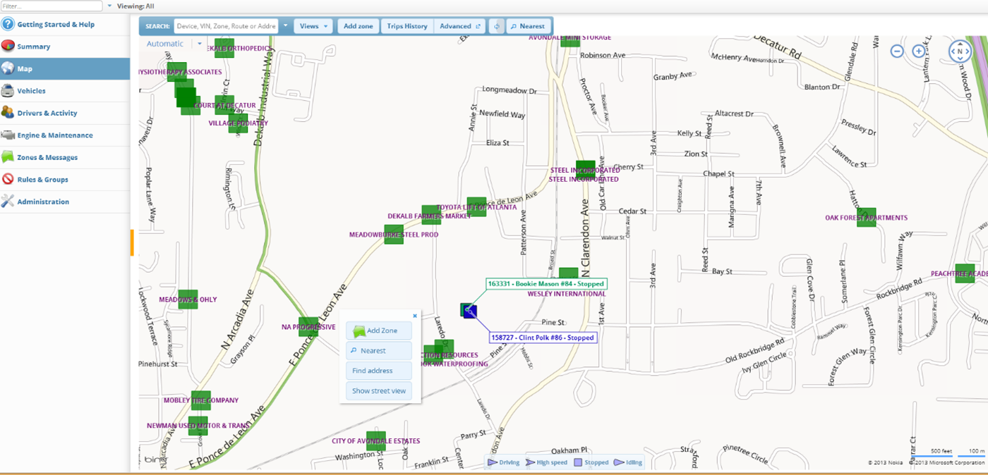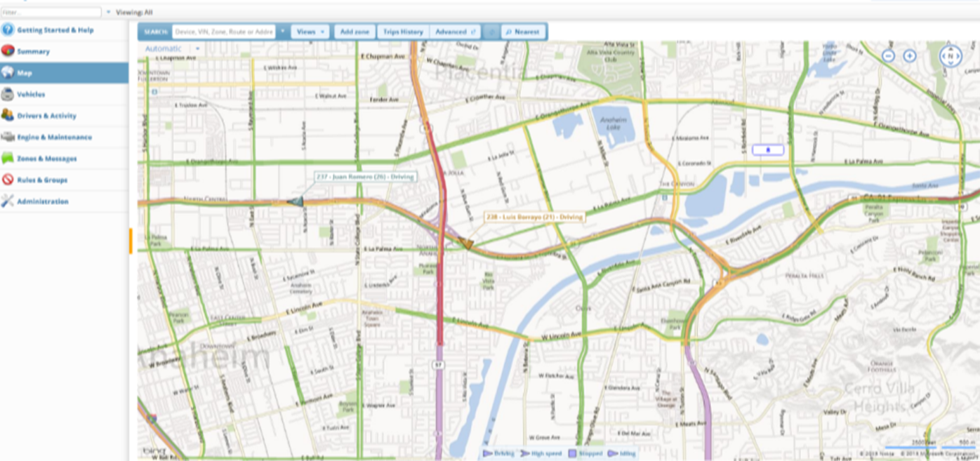 Real-time vehicle movement can be viewed on a variety of street or aerial image maps. Bing, Google or OpenStreetMaps are standard mapping options.